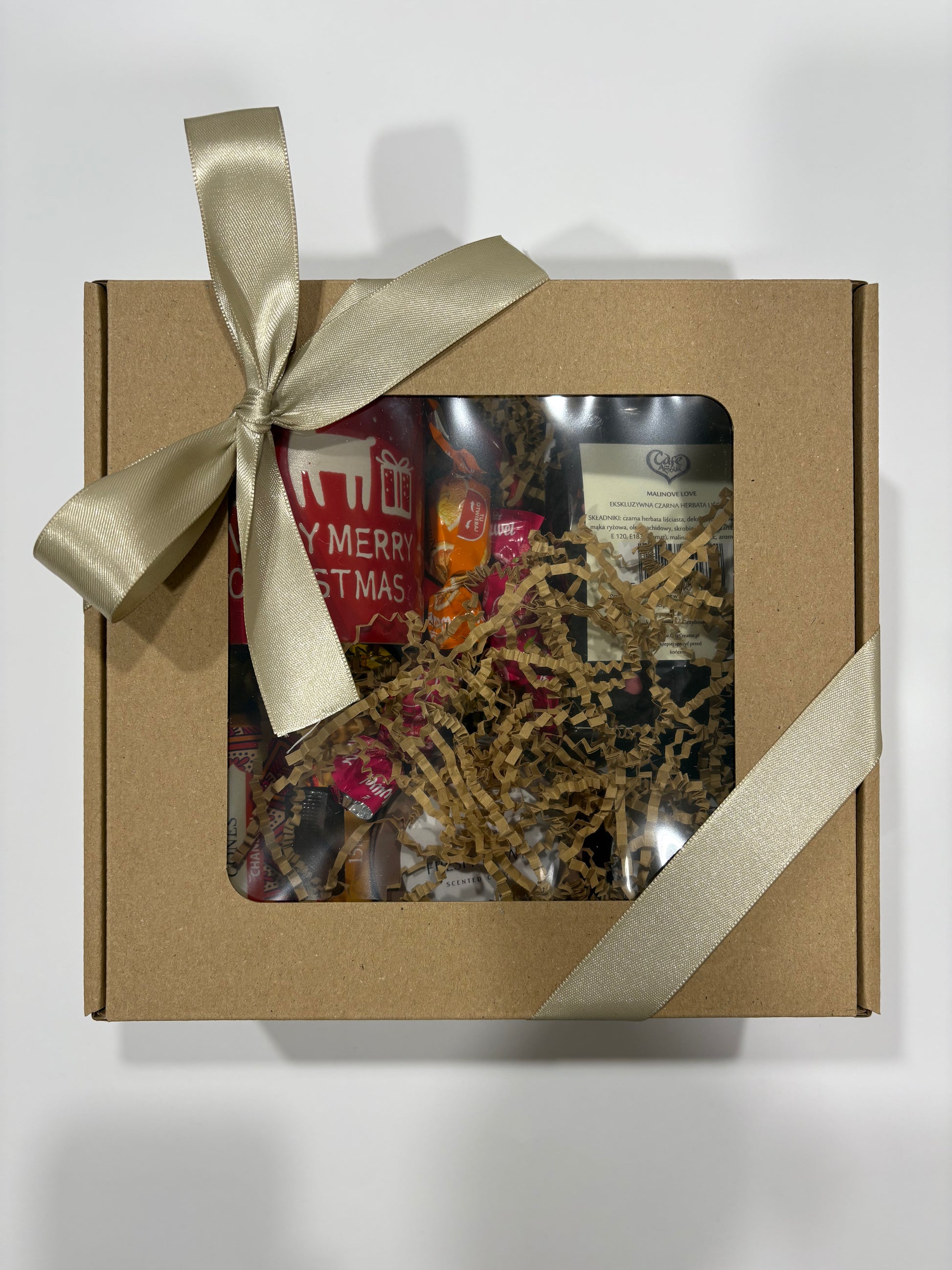 Gotowy prezent dla członka rodziny, przyjaciela, bądź znajomego. Zawiera kubek świąteczny, 2 świeczki zapachowe, herbatkę owocową, cukierki oraz kadzidełka.
